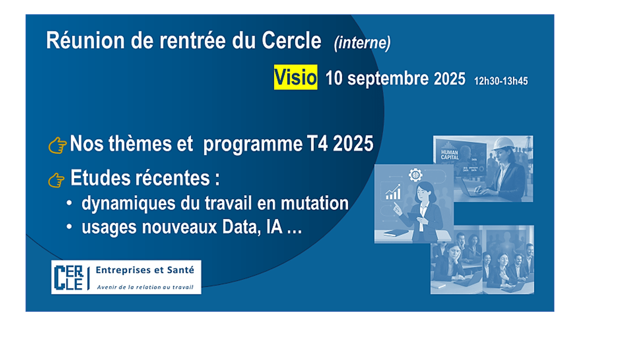 Notre Cercle consolide, via ses membres-souscripteurs, un peu plus de deux millions de salariés directs. Nos préoccupations prennent en compte la santé globale/relation au travail sur toute la chaine de création de valeur.